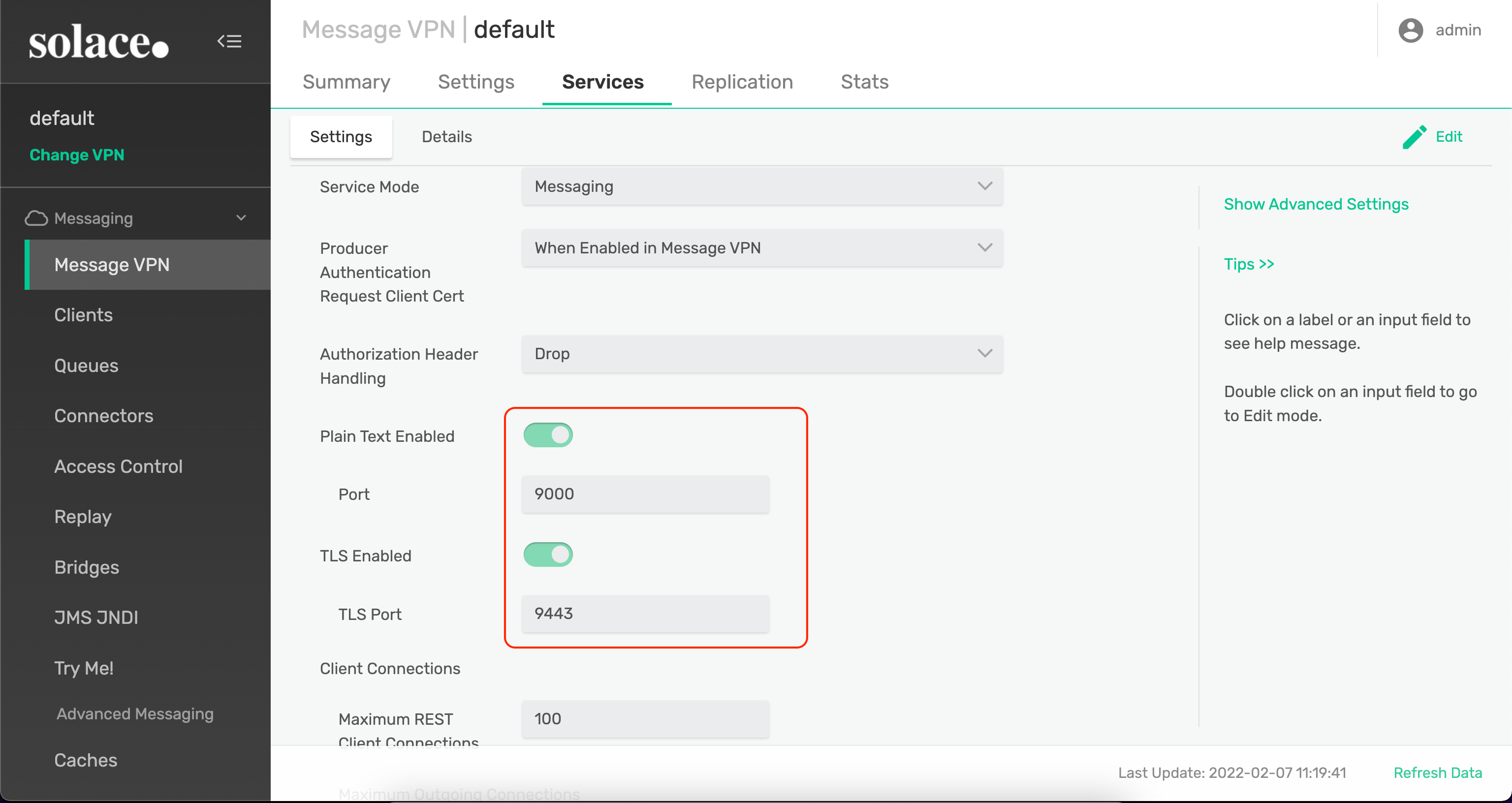 Note: By default, the Solace Event Broker Software "default" message VPN has authentication disabled.