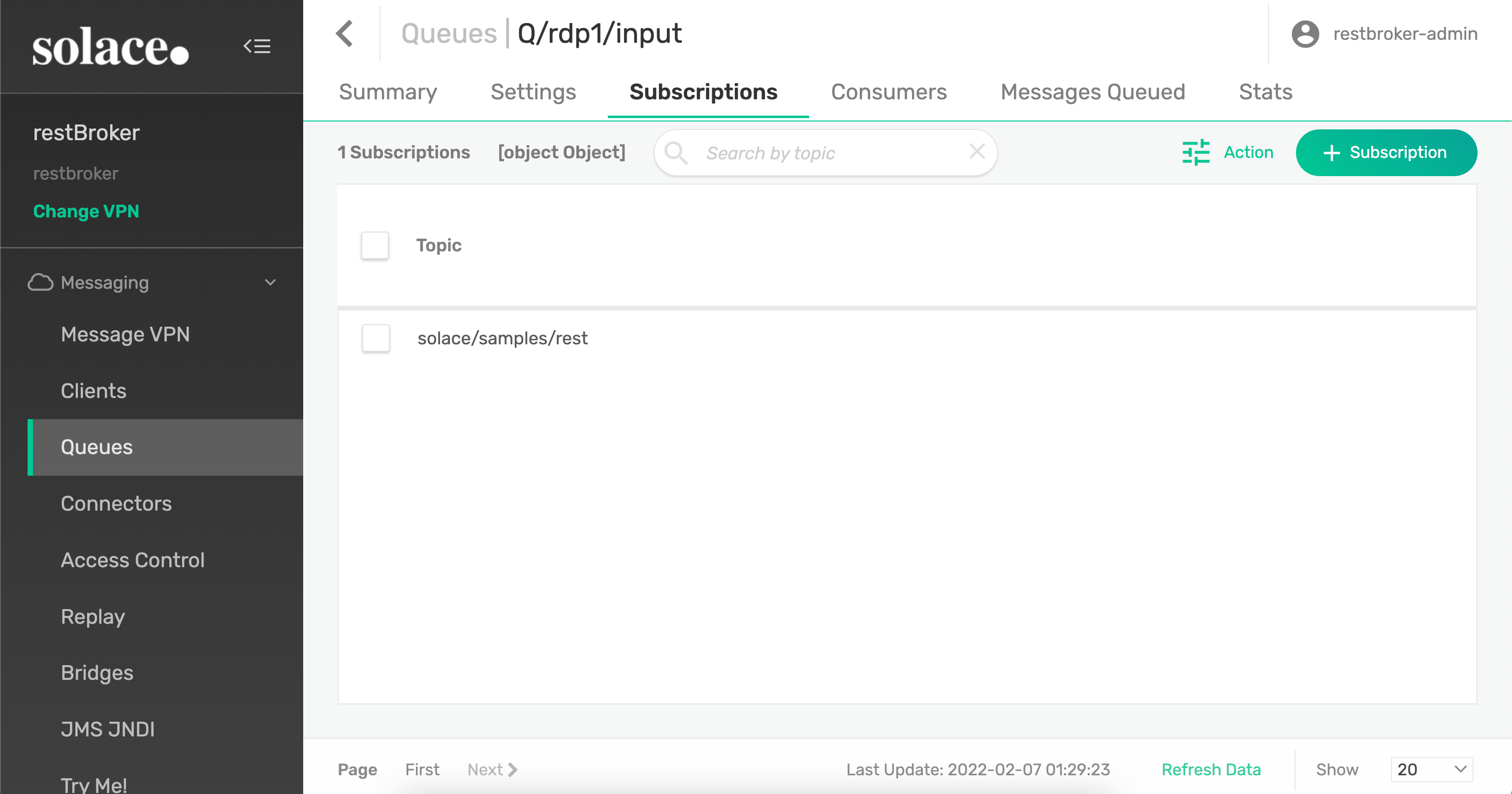 Next, you must configure a queue and a REST delivery point on Solace Message VPN.
