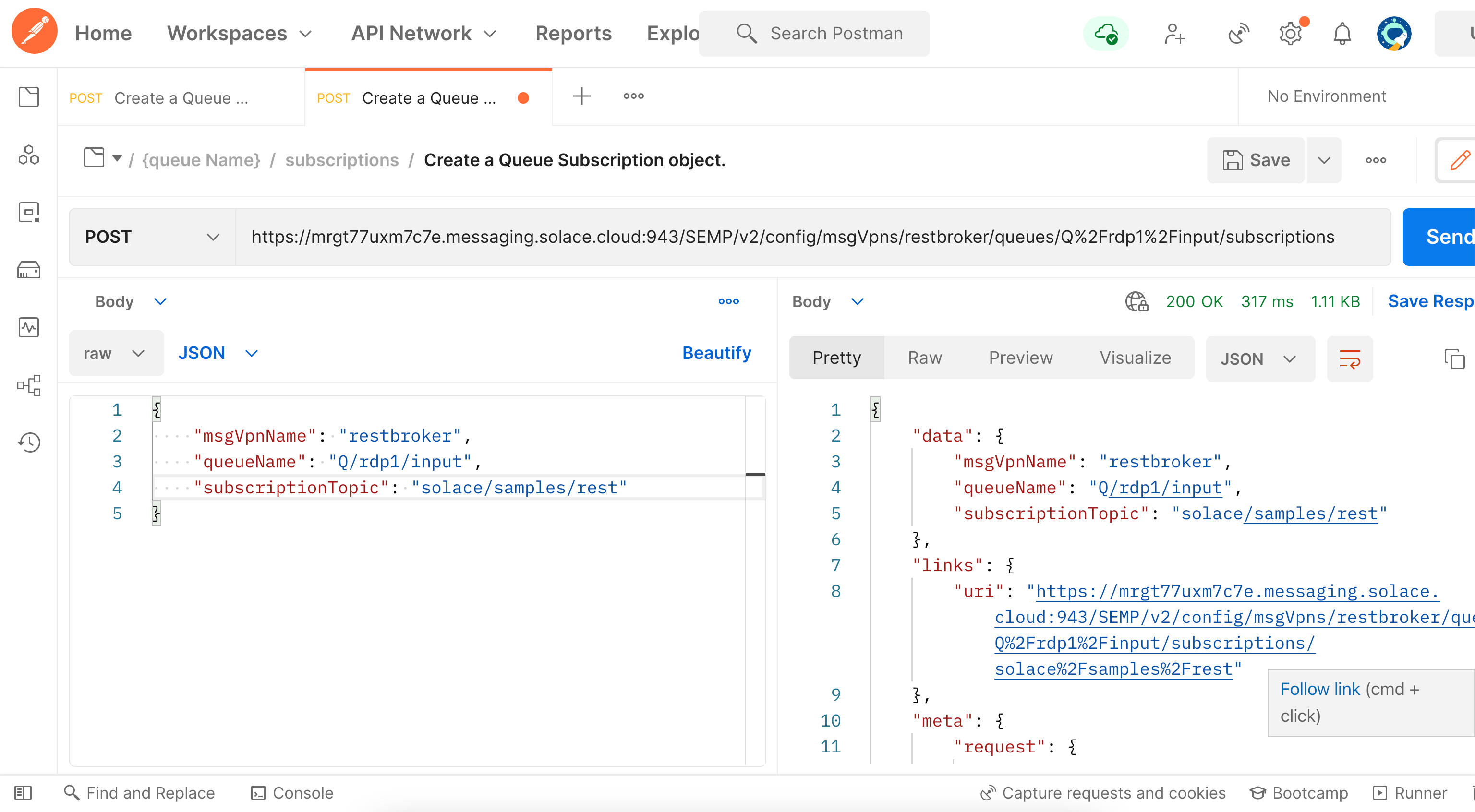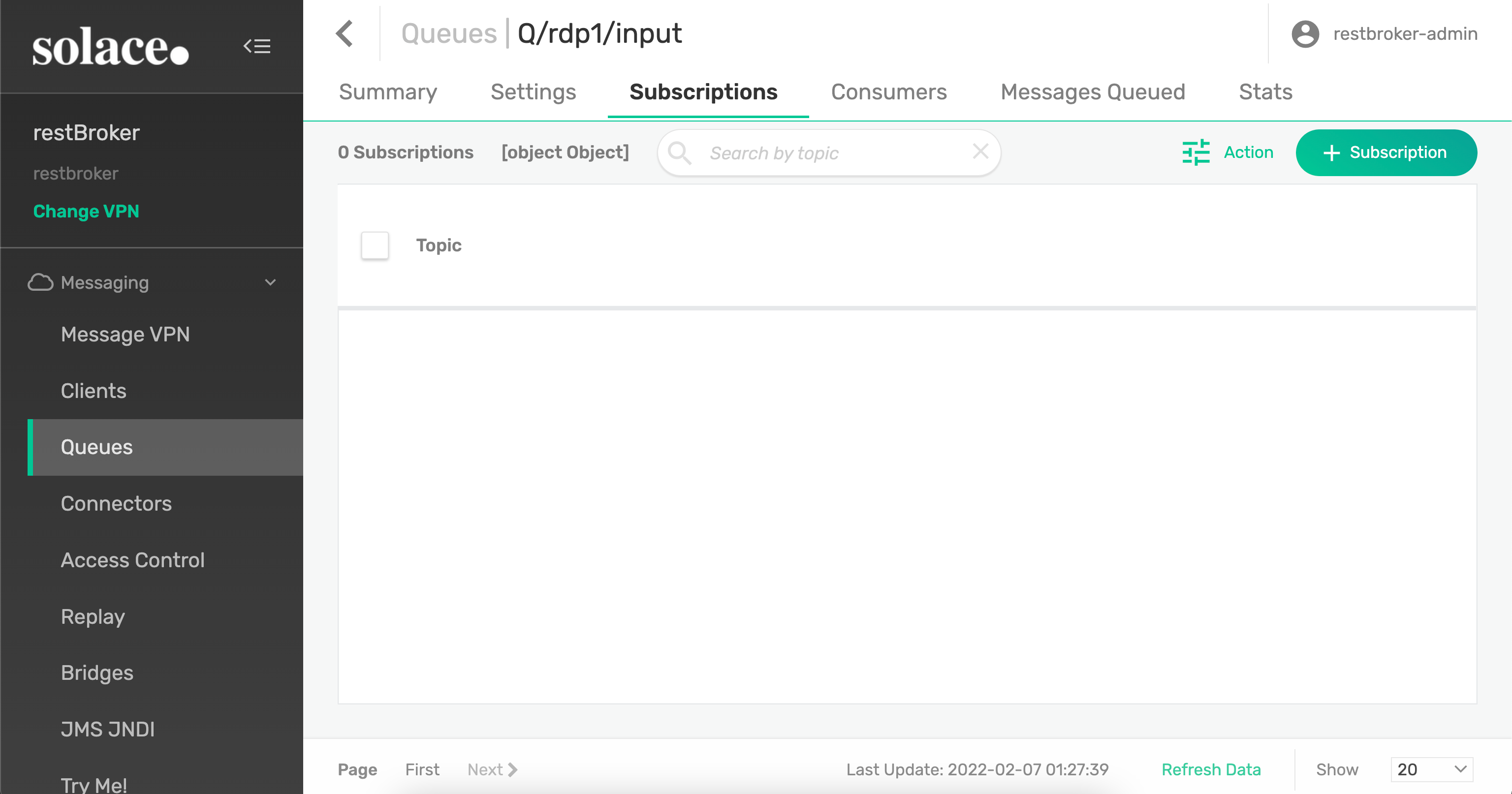 -X POST 'https://CLOUD_BROKER_HOST:943/SEMP/v2/config/msgVpns/VPN_NAME/queues/Q%2Frdp1%2Finput/subscriptions' \