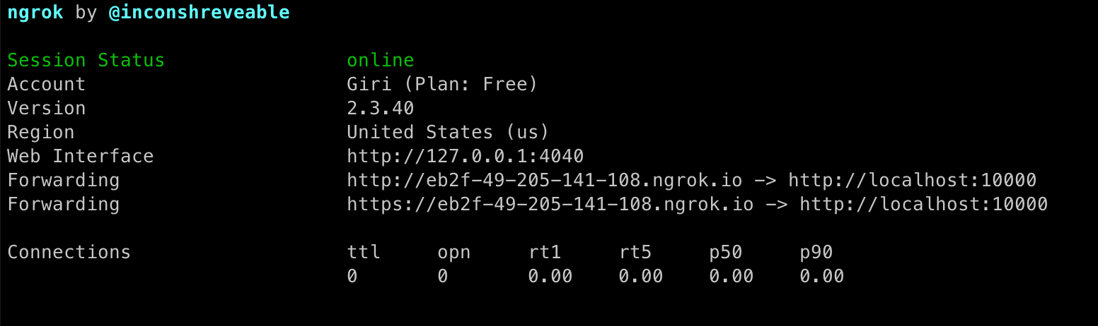 Server running at http://<RC_HOST>:<RC_PORT>/Again in your environment, the RC_HOST and RC_PORT will be the host/IP and port that your server is listening on. For example http://49.210.148.187 :10000/ or with a public DNS name http://myhost.mydomain.com:10000 (for example).